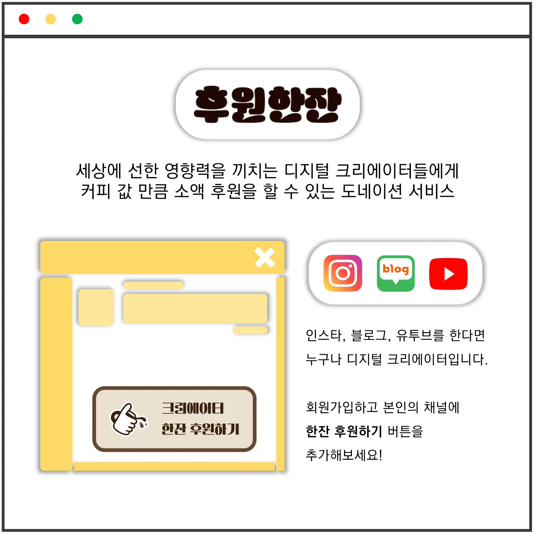 후원링크(버튼)을 인스타그램, 유투브, 블로그 등에 추가해주세요.